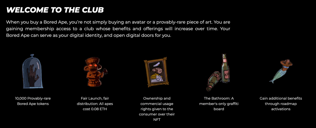 Probably the simplest parallel that you can draw is to own an artwork. Similar to any artwork, you can buy them for investment, expression of one’s taste, status symbol, and many more. BAYC is no different here. Each BAYC NFT represents a unique digital cartoon primate art and people can buy them for any number of reasons.
