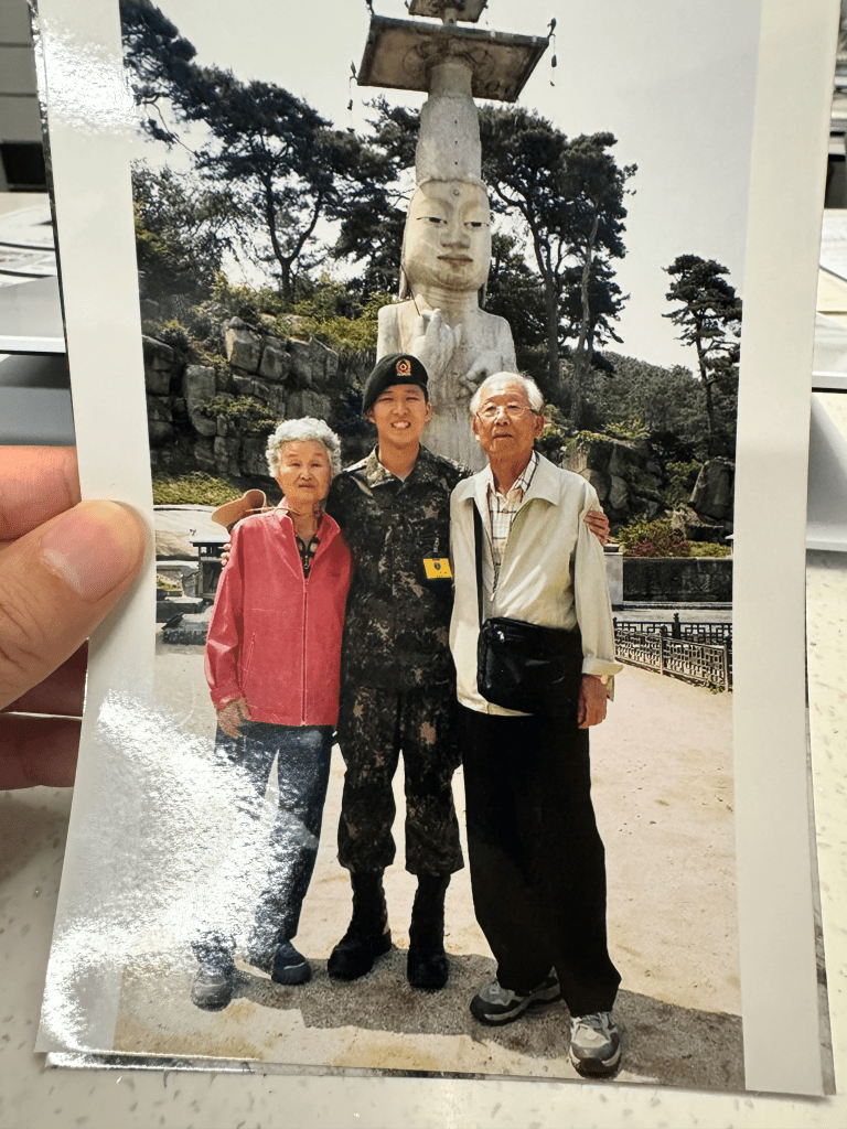 할머니에 따르면, 할아버지는 수전증 때문에, 단체 투어에서 밥을 먹기 힘들어 하셨다고 한다. 그래서 할머니가 꼭 따라 가셔야 했는데, 남아 있는 삼촌이 눈에 밟혀서 같이 많이 가시지 못했다고 한다. 할머니는 장례식 내내 이 얘기를 하셨다.